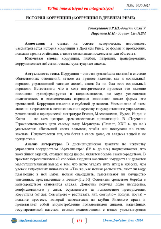 ИСТОРИЯ КОРРУПЦИИ (КОРРУПЦИЯ В ДРЕВНЕМ РИМЕ)
