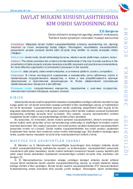 davlat ulushini xususiylashtirish zarurati ham asoslab berilgan. Maqolada O‘zbekistonda davlat