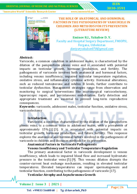 pathogenesis of varicocele involves both anatomical and hormonal factors,