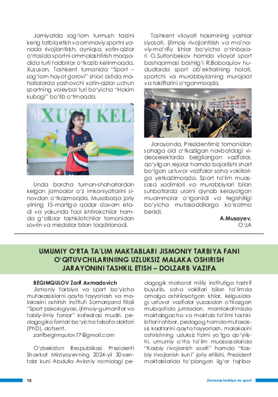 Jismoniy tarbiya va sport bo'yicha mutaxassislarni qayta tayyorlash va malakasini oshirish instituti o'qituvchisi pedagogika fanlari falsafa doktori