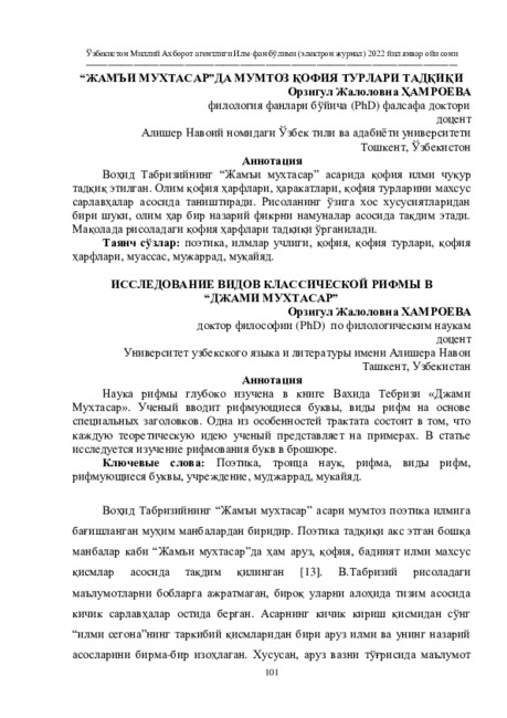 Rashididdin Watwat's Hadoyiq us-si hr fi daqoyiq ash-shi'r is one such treatise. Created in the 12th centmy, this pamphlet provides information on 63 types of art, and the article classifies and studies the types of art according to the nature of form and content.