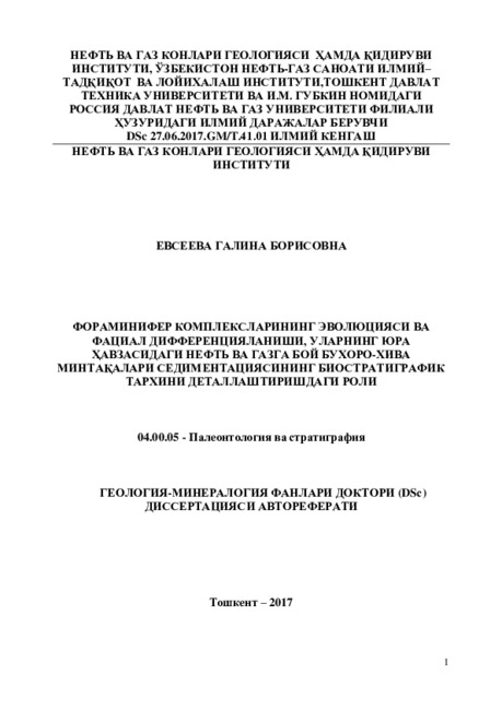 На основе проведенных исследований по диссертации доктора наук (DSc) на тему «Эволюция и фациальная дифференциация комплексов фораминифер и их роль при детализации биостратиграфических схем юрского бассейна седиментации Бухаро - Хивинского нефтегазоносного региона» представлены следующие выводы: