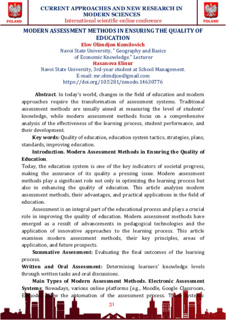MODERN ASSESSMENT METHODS IN ENSURING THE QUALITY OF EDUCATION