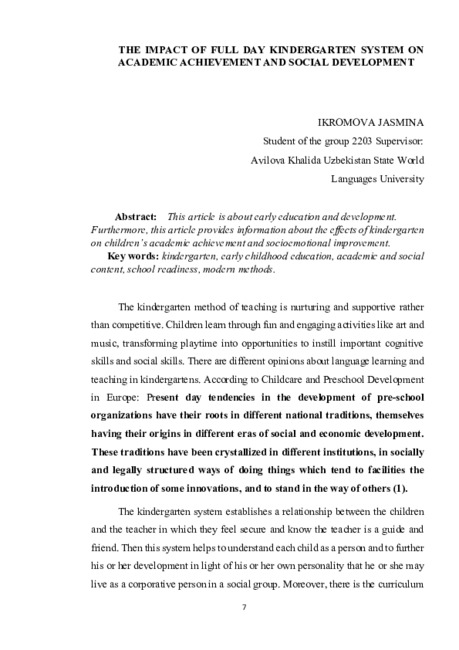 Furthermore, this article provides information about the effects of kindergarten