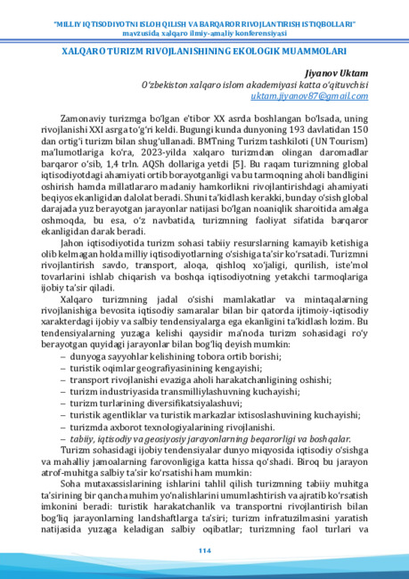 XALQARO TURIZM RIVOJLANISHINING EKOLOGIK MUAMMOLARI