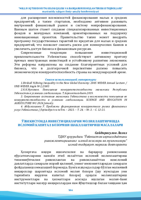 ЎЗБЕКИСТОНДА ИНВЕСТИЦИЯЛАРНИ МОЛИЯЛАШТИРИШДА