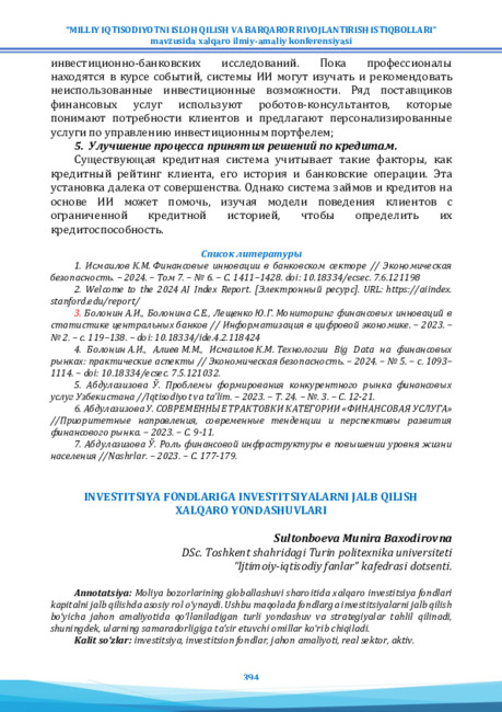 7. Абдулазизова Ў. Роль финансовой инфраструктуры в повышении уровня жизни