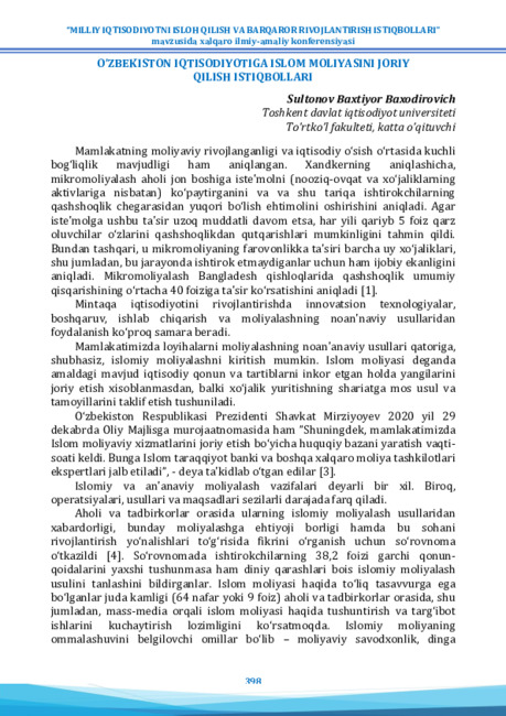 ishlarini kuchaytirish lozimligini ko‘rsatmoqda. Islomiy moliyaning