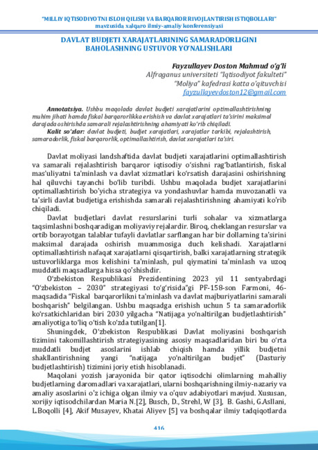 samaradorlik, fiskal barqarorlik, optimallashtirish, davlat xarajatlar