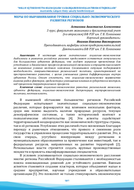 социально-экономическое развитие, региональная экономика,