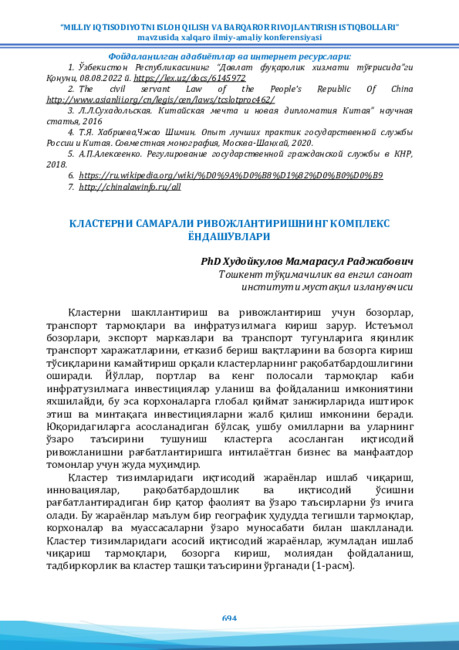 КЛАСТЕРНИ САМАРАЛИ РИВОЖЛАНТИРИШНИНГ КОМПЛЕКС