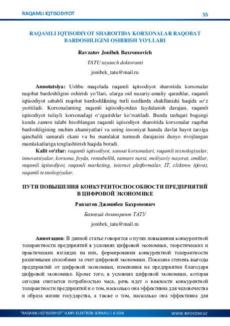 “RAQAMLI IQTISODIYOT” ILMIY-ELEKTRON JURNALI | 6-SON