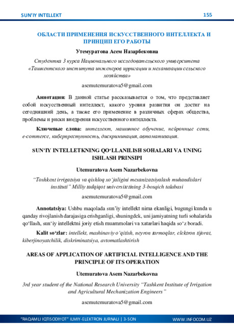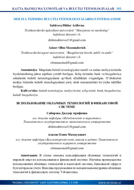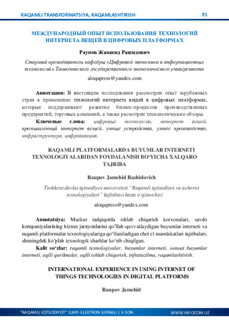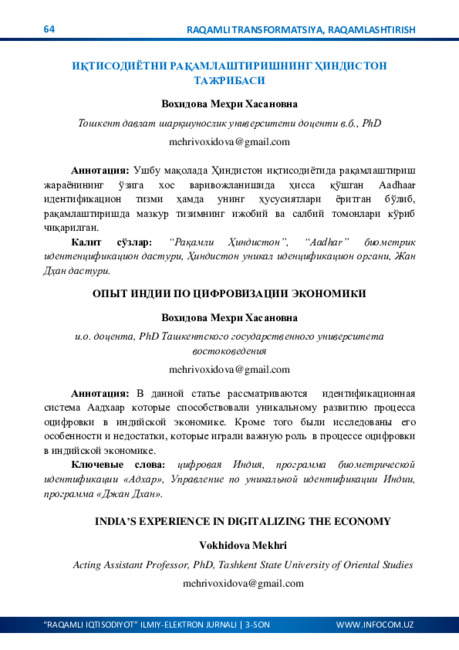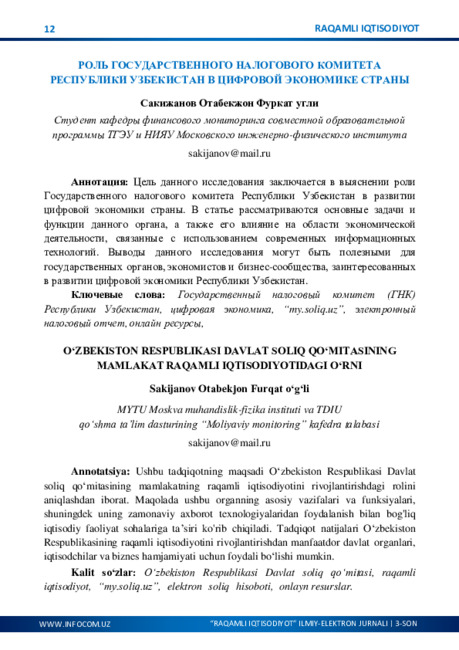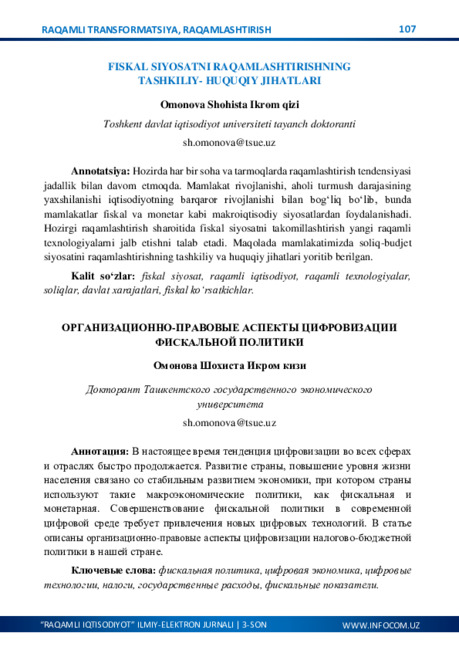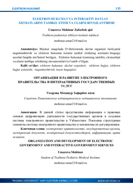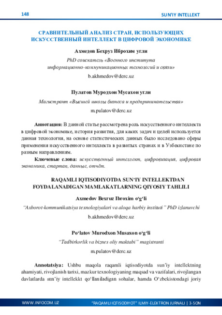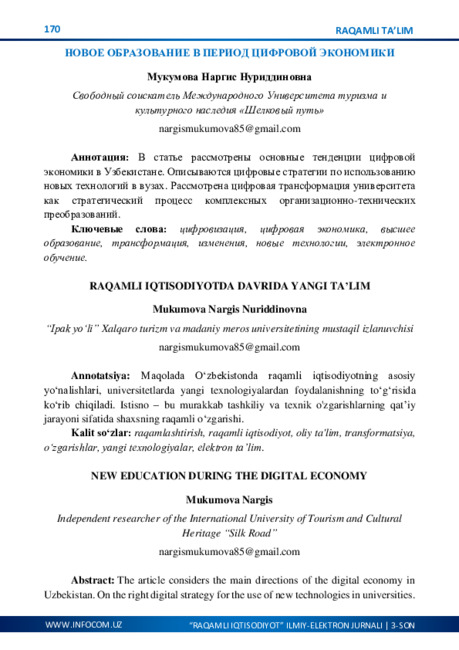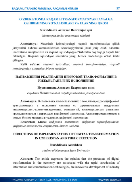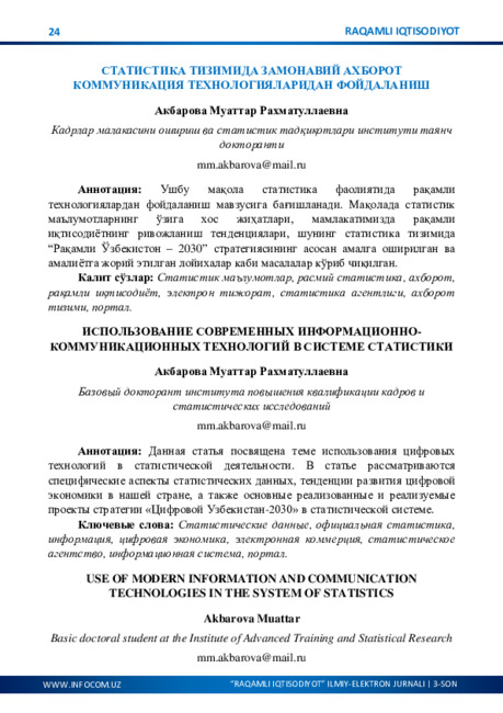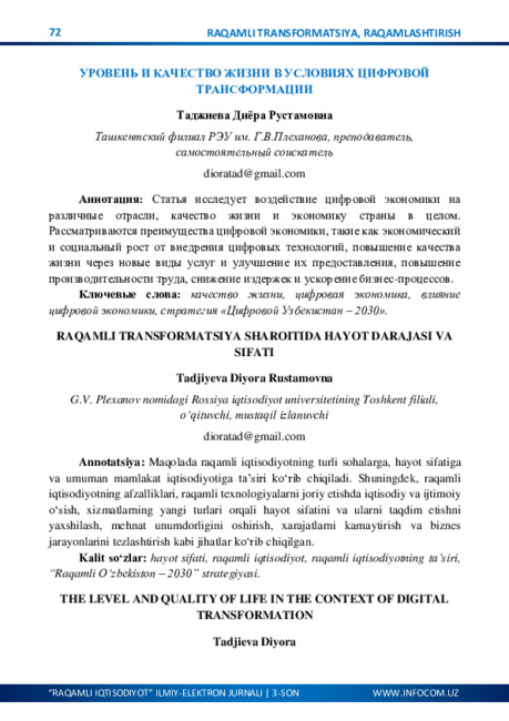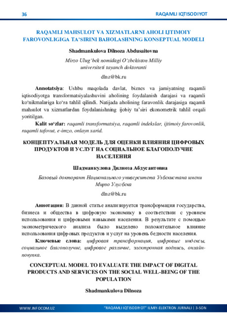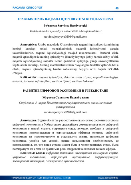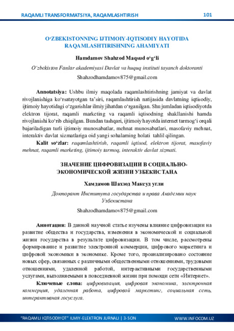 O‘ZBEKISTONNING IJTIMOIY-IQTISODIY HAYOTIDA RAQAMLASHTIRISHNING AHAMIYATI