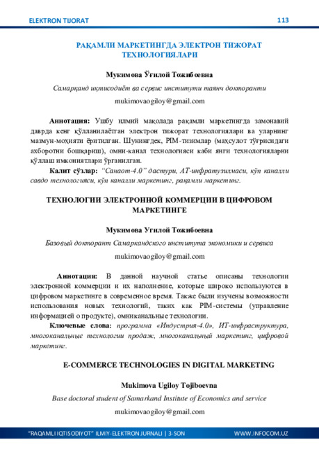 elektron tijorat, raqamli marketing va raqamli iqtisodning shakllanishi hamda
