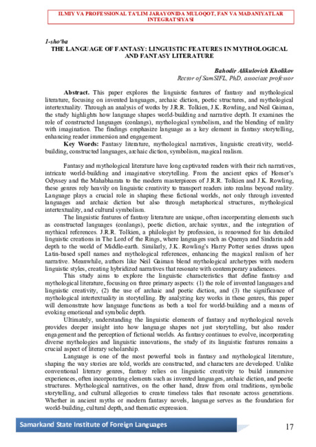 THE LANGUAGE OF FANTASY: LINGUISTIC FEATURES IN MYTHOLOGICAL