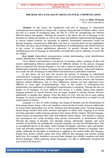 THE ROLE OF LANGUAGE IN CROSS-CULTURAL COMMUNICATION