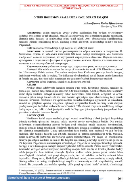 the 20th-century Uzbek writers. The author analyzes how Koshimov portrays female images,