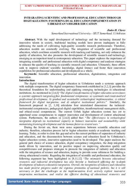 Scientific education, professional education, digitalization, integration and