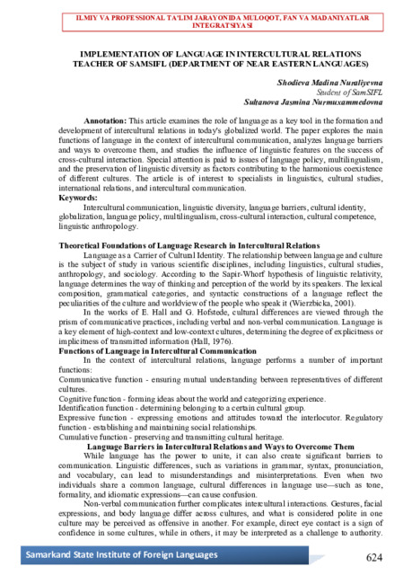 IMPLEMENTATION OF LANGUAGE IN INTERCULTURAL RELATIONS