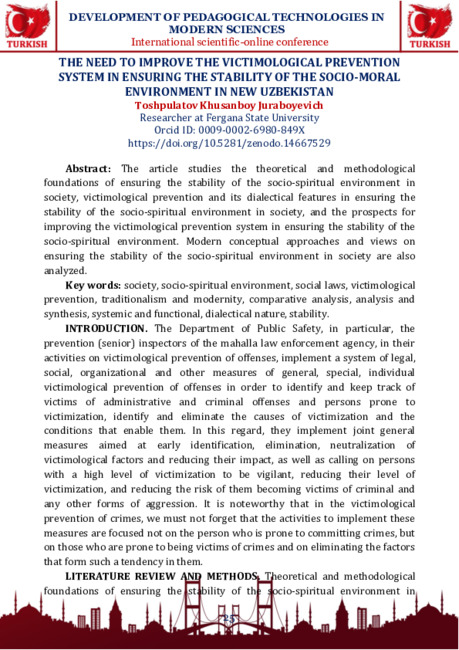 THE NEED TO IMPROVE THE VICTIMOLOGICAL PREVENTION SYSTEM IN ENSURING THE STABILITY OF THE SOCIO-MORAL ENVIRONMENT IN NEW UZBEKISTAN