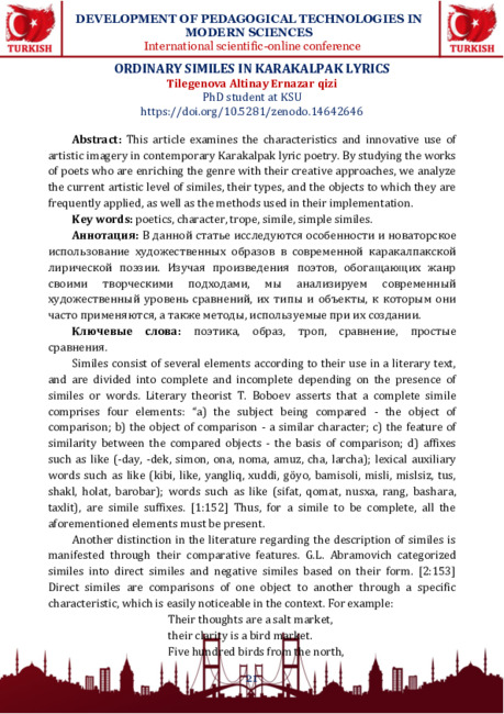 ORDINARY SIMILES IN KARAKALPAK LYRICS