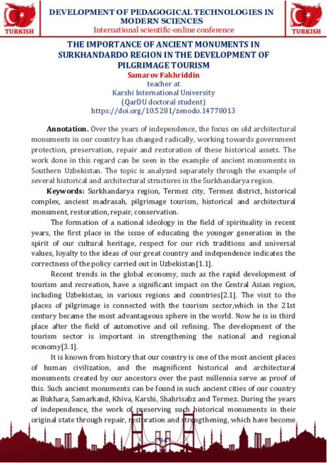 Development of Tourism in Surkhandarya Region in 2020-2021” of the