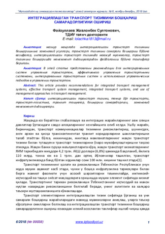 В этой статье представлены рекомендации для интегрированных систем управления транспортом, эффективного управления транспортными системами, интегрированных транспортных систем и использования управленческих подходов в управлении транспортом.