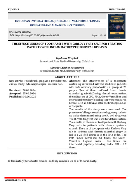 CLINICAL AND MORPHOLOGICAL ASSESSMENT OF THE EFFECTIVENESS OF THE APPLICATION INNOVATIVE THERAPEUTIC AND PROPHYLACTIC TOOTHPASTE IN THE COMPLEX TREATMENT OF PATIENTS WITH MAJOR DENTAL DISEASES