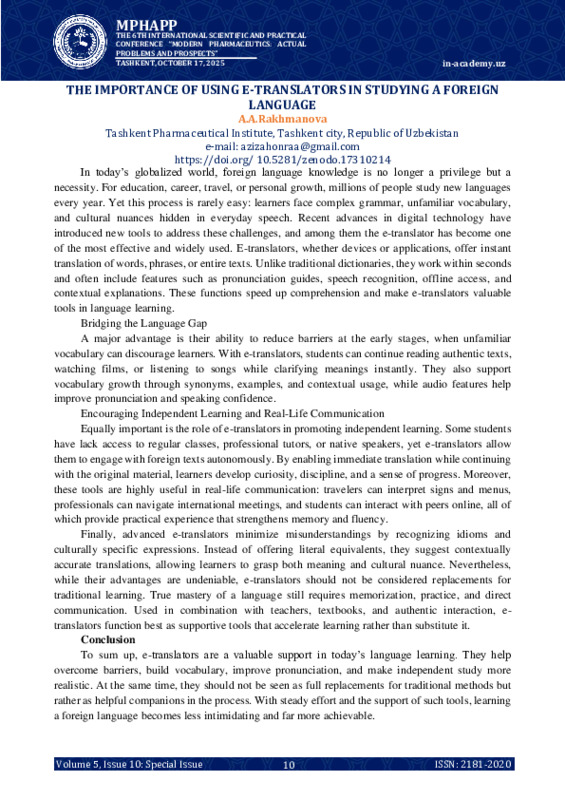 THE IMPORTANCE OF USING E-TRANSLATORS IN STUDYING A FOREIGN LANGUAGE