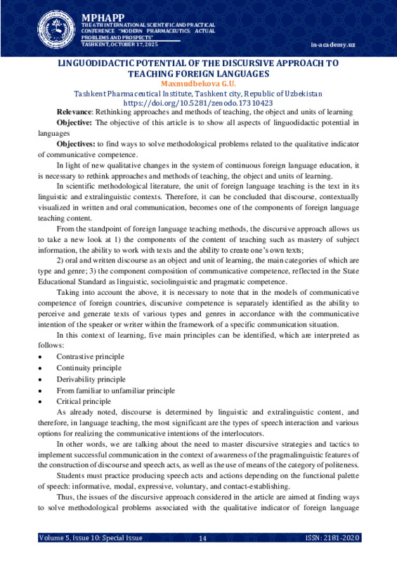 LINGUODIDACTIC POTENTIAL OF THE DISCURSIVE APPROACH TO TEACHING FOREIGN LANGUAGES