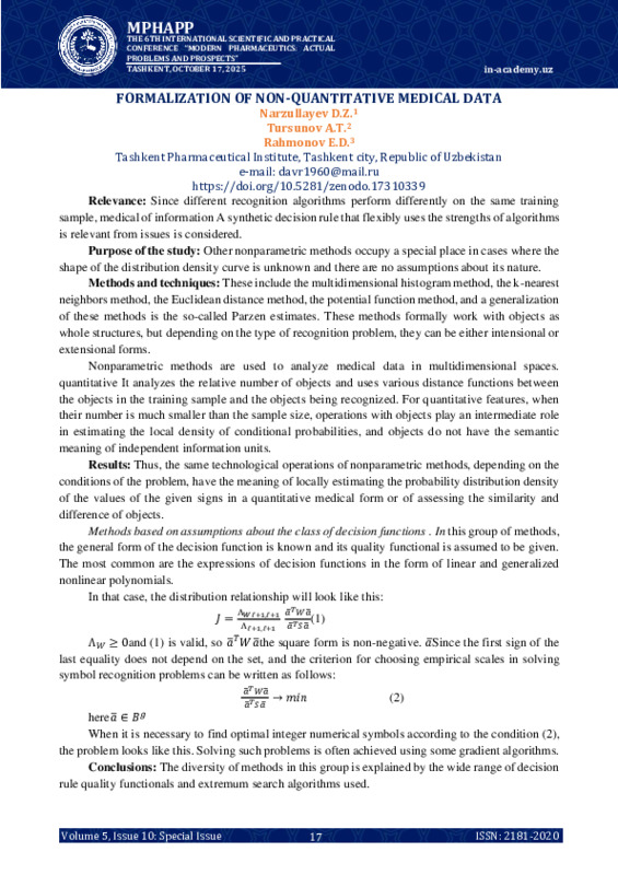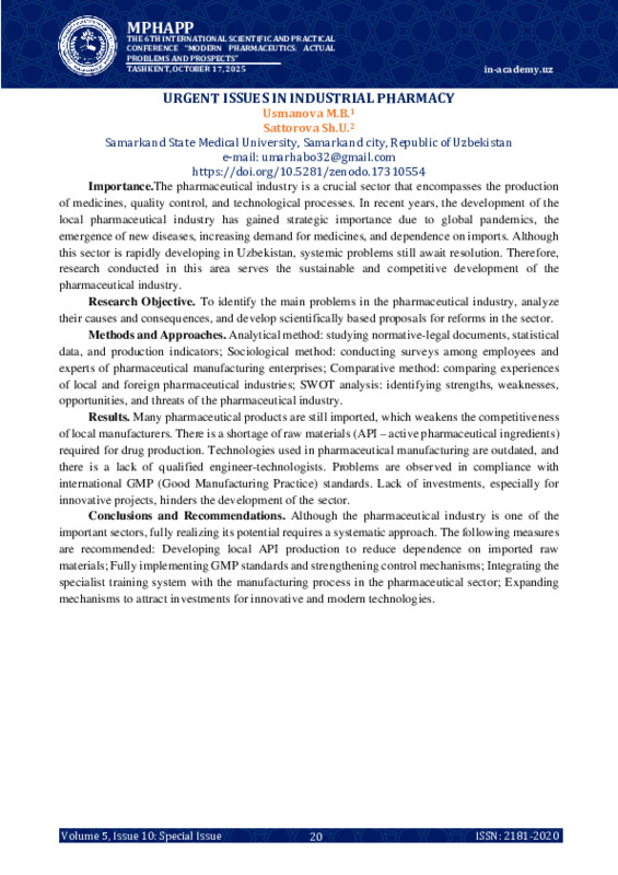 № 10(MPHAPP) (2025) THE 6TH INTERNATIONAL SCIENTIFIC AND PRACTICAL CONFERENCE “MODERN PHARMACEUTICS: ACTUAL PROBLEMS AND PROSPECTS”