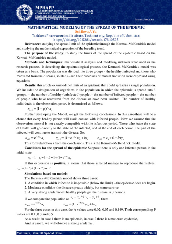 MATHEMATICAL MODELING OF THE SPREAD OF THE EPIDEMIC