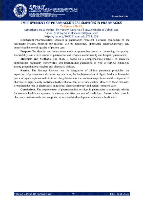 Pharmaceutical services in pharmacies represent a crucial component of the healthcare system, ensuring the rational use of medicines, optimizing pharmacotherapy, and improving the overall quality of patient care.