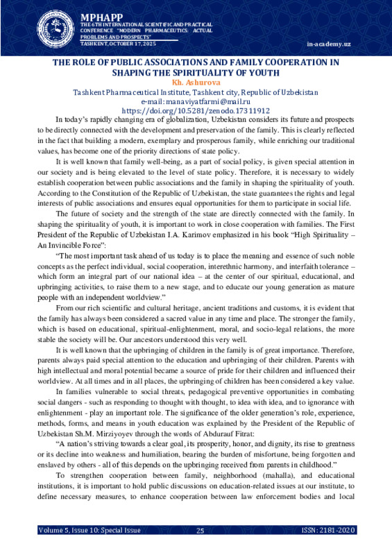 THE ROLE OF PUBLIC ASSOCIATIONS AND FAMILY COOPERATION IN SHAPING THE SPIRITUALITY OF YOUTH