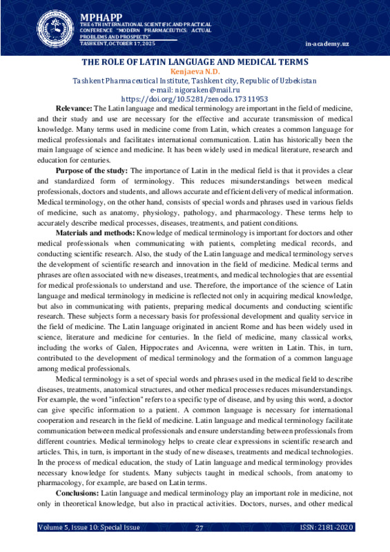 THE ROLE OF LATIN LANGUAGE AND MEDICAL TERMS