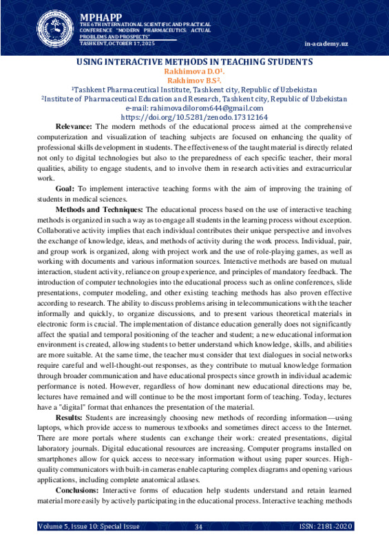 USING INTERACTIVE METHODS IN TEACHING STUDENTS