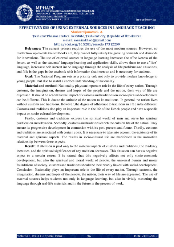 EFFECTIVENESS OF USING EXTERNAL SOURCES IN LANGUAGE TEACHING