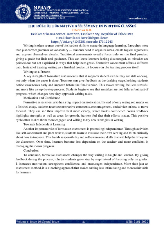 THE ROLE OF FORMATIVE ASSESSMENT IN WRITING CLASSES