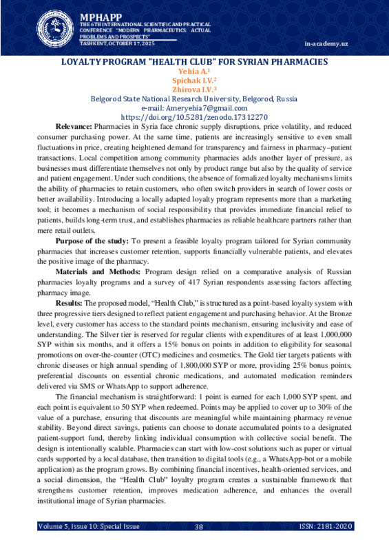 LOYALTY PROGRAM "HEALTH CLUB" FOR SYRIAN PHARMACIES
