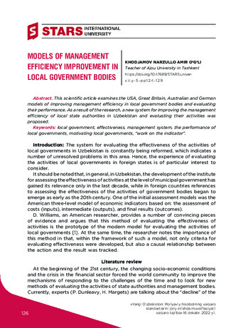 efficiency of local state authorities in Uzbekistan and evaluating their activities was