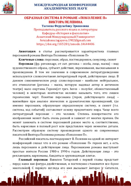 Тагоева , Ф. (2025). ОБРАЗНАЯ СИСТЕМА В РОМАНЕ «ПОКОЛЕНИЕ П» ВИКТОРА ПЕЛЕВИНА. Международная конференция академических наук, 4(1), 46–50. извлечено от https://inlibrary.uz/index.php/icas/article/view/61137