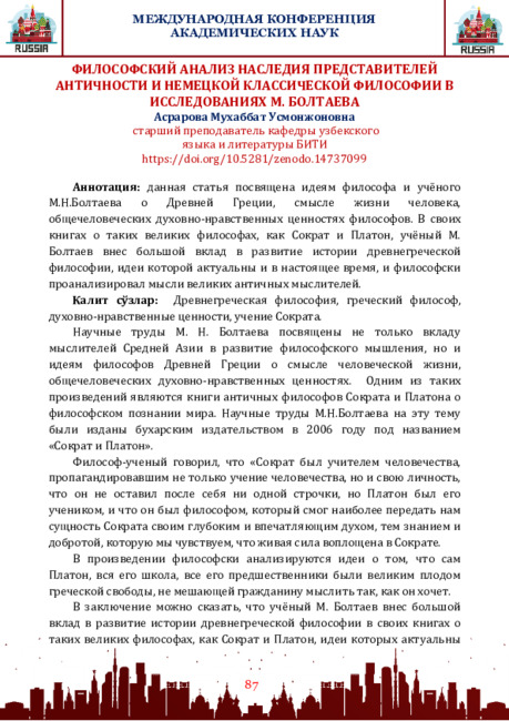 ИССЛЕДОВАНИЯХ М. БОЛТАЕВА