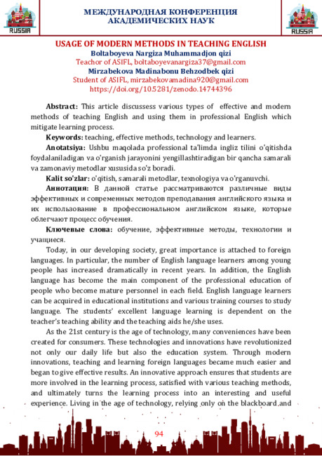 USAGE OF MODERN METHODS IN TEACHING ENGLISH