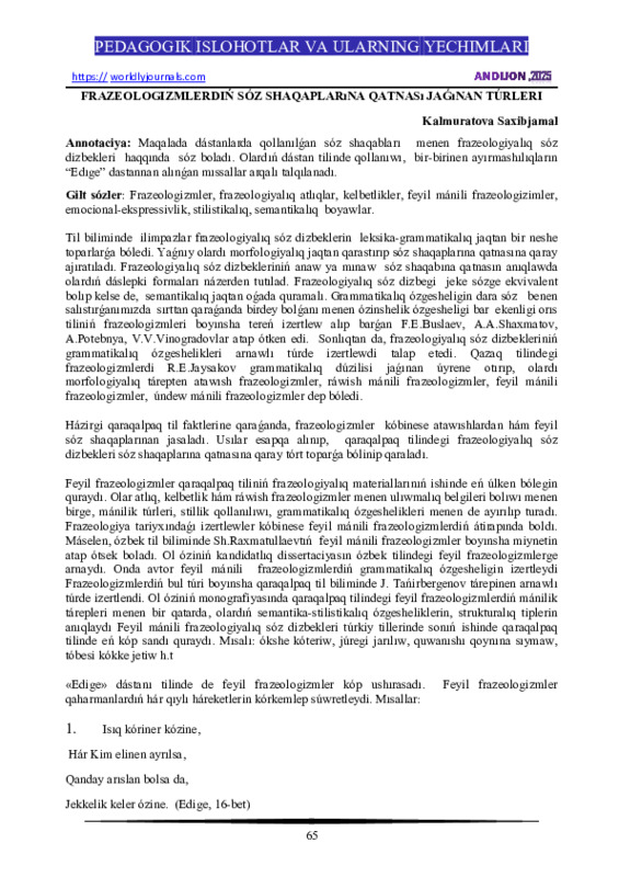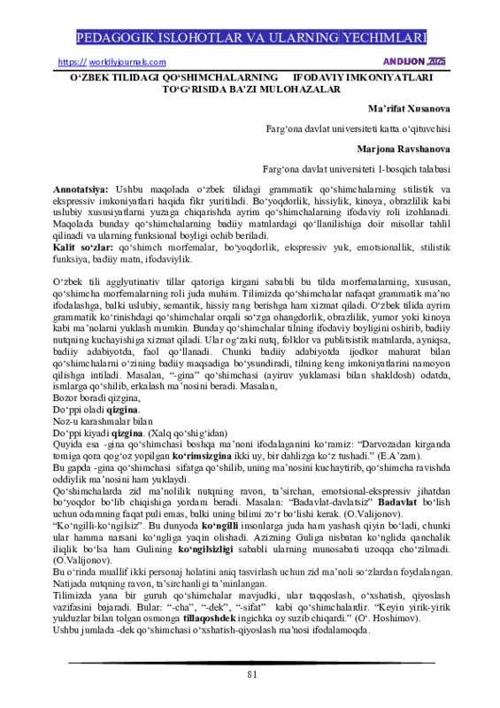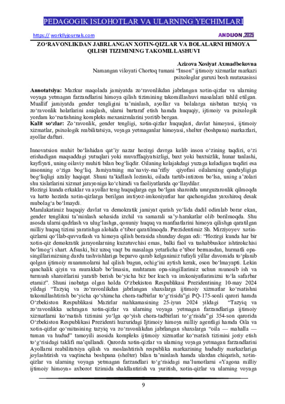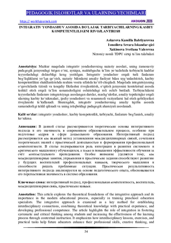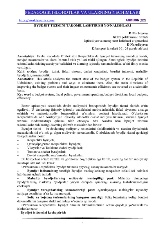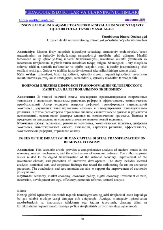 Worldly Knowledge ilmiy tadqiqotlarni qo'llab quvvatlash markazi PEDAGOGIK ISLOHOTLAR VA ULARNING YECHIMLARI mavzusidagi ko‘p tarmoqli, ilmiy, masofaviy, onlayn konferensiyasini eʼlon qilinadi.