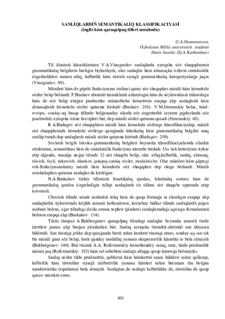 tán bolǵan semantikalıq ózgesheliklerin esapqa aladı (Nizomiddinova: 37).