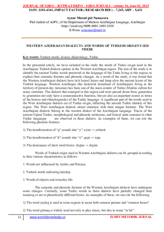 JOURNAL OF IQRO – ЖУРНАЛ ИҚРО – IQRO JURNALI – volume 16, issue 02, 2025