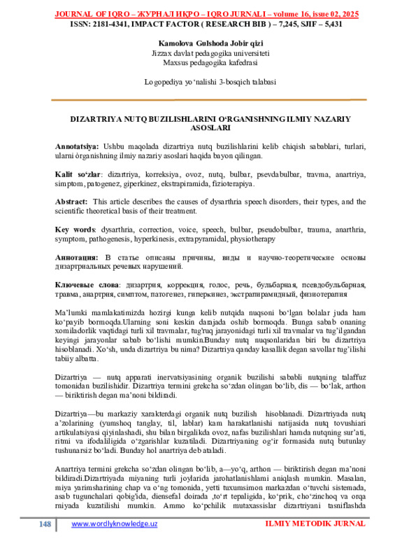 JOURNAL OF IQRO – ЖУРНАЛ ИҚРО – IQRO JURNALI – volume 16, issue 02, 2025