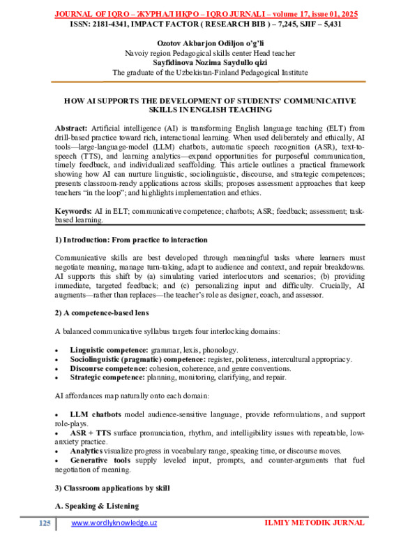 JOURNAL OF IQRO – ЖУРНАЛ ИҚРО – IQRO JURNALI – volume 17, issue 01, 2025