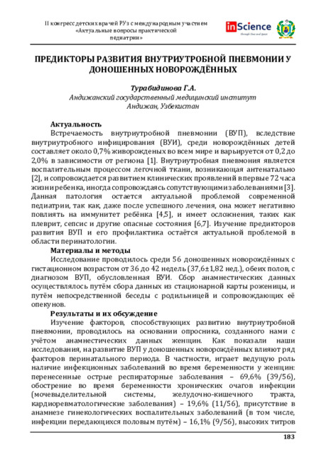 ПРЕДИКТОРЫ РАЗВИТИЯ ВНУТРИУТРОБНОЙ ПНЕВМОНИИ У