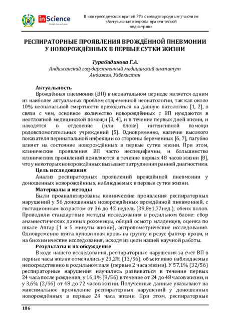РЕСПИРАТОРНЫЕ ПРОЯВЛЕНИЯ ВРОЖДЁННОЙ ПНЕВМОНИИ